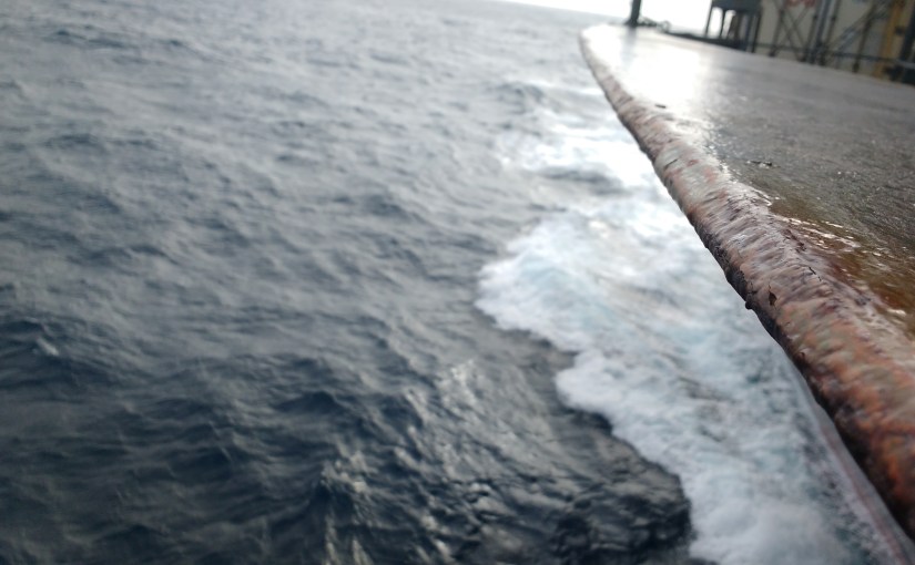 Gegen Abend hin, fängt das Schiff stärker an zu rollen. Rollen ist die Seitwärtsbewegung, die mit richtiger Beladung und entsprechendem Schwerpunkt ausgeglichen werden kann, damit das Schiff nicht zu schnell, aber auch nicht zu träge die Wellenbewegungen aufnimmt. Wenn das Schiff zu schnell rollt ist es für die Crew unangenehm und durch die starken Kräfte könnten die Container losbrechen. Ist das Schiff zu träge, prallen die Wellen seitlich an den Rumpf und verschlechtern die Manövrierfähigkeit. So habe ich es mir zumindest erklären lassen. Für morgen sind noch stärkere Winde und Wellen angekündigt, ich freue mich weiterhin auf sie. Tischtennis ist heute wegen erneuter Müdigkeit abgesagt, ich besteige den Swimming Pool und werfe ein paar Körbe.